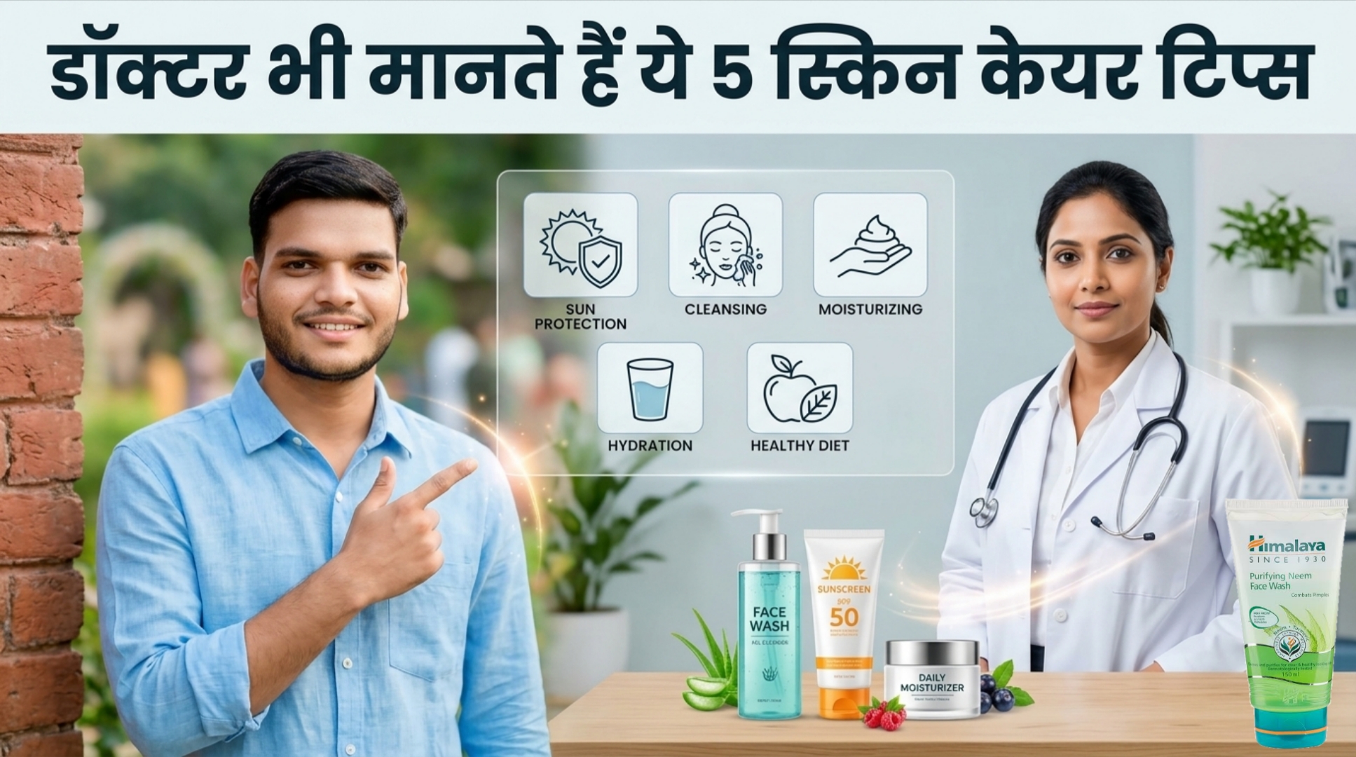 डॉक्टर भी मानते हैं ये 5 स्किन केयर टिप्स जिन्हें अपनाकर आप अपनी त्वचा को हेल्दी, साफ और ग्लोइंग बना सकते हैं। आज के समय में प्रदूषण, खराब लाइफस्टाइल और गलत खान-पान के कारण त्वचा से जुड़ी कई समस्याएं बढ़ती जा रही हैं। ऐसे में सही स्किन केयर रूटीन अपनाना बहुत जरूरी हो जाता है।